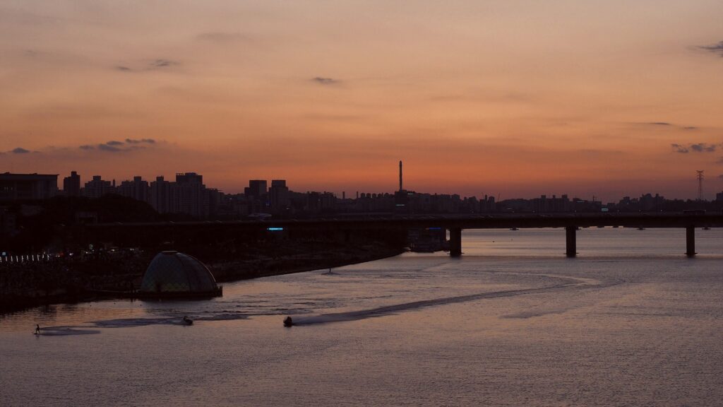 한강에 길게 누운 윤슬을 보다가, 지평선을 향해 착륙을 시도하는 태양으로 시선을 옮겼다. 똑바로 보기가 힘들다. 가지고 간 망원렌즈를 겨누었다. 태양과 가까운 곳을 기준으로 노출을 맞추고, 몇 컷을 찍었다. ‘뇌출계’에 익숙하지 않으니, 노출계가 밝기를 적절하게 잘 계산했는지는 찍어봐야 안다. 노출보정값을 -0.7 정도로 맞춰보고 다시 찍는다. 디지털이니까 가능한 일이다.