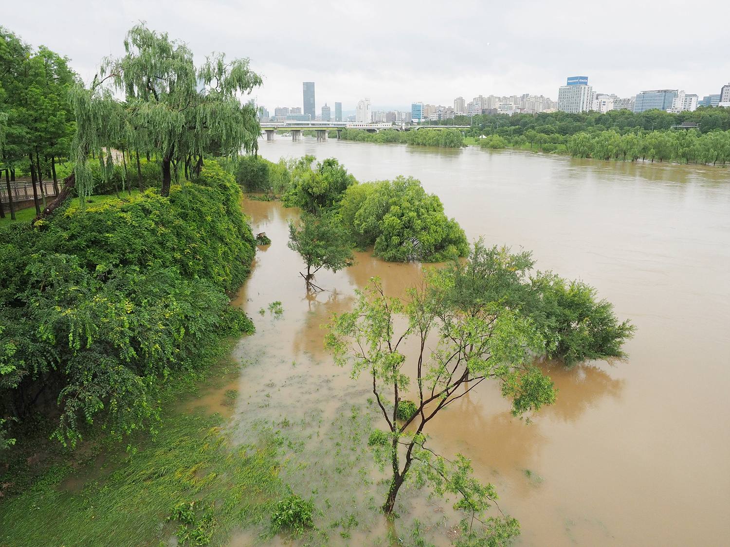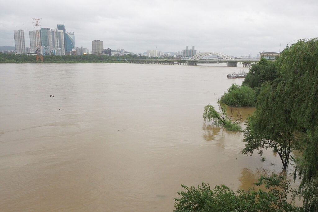 서울 선유도에 들렀다. 대체 한강 물이 어떻게 된 건지 확인하고 싶었다. 평소엔 고여있는 것처럼 보이던 것이, 이날은 세차게 흐르고 있었다. 강폭은 한참 넓어졌다. 둔치를 전부 집어삼킨 탓이다. 한강공원의 나무들은 머리만 물 위로 겨우 내놓고 있었다. 중부권에서 빗발이 약해져 물이 조금 빠졌다는 상태가 이 정도였다. 한강도 하상계수가 큰 강이니 둔치쯤은 물이 불면 잠길 수 있는 지대라고 쳐도, 강변의 주요 도로가 통제와 통행 재개를 반복하는 것이 ‘정상적’인 상황은 아닐 것이다.