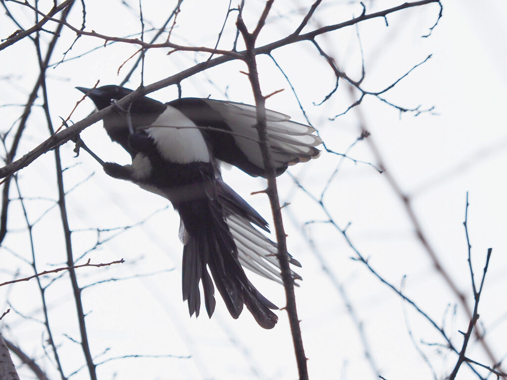 2021.02.06. 막 나뭇가지 하나를 꺾은 까치.