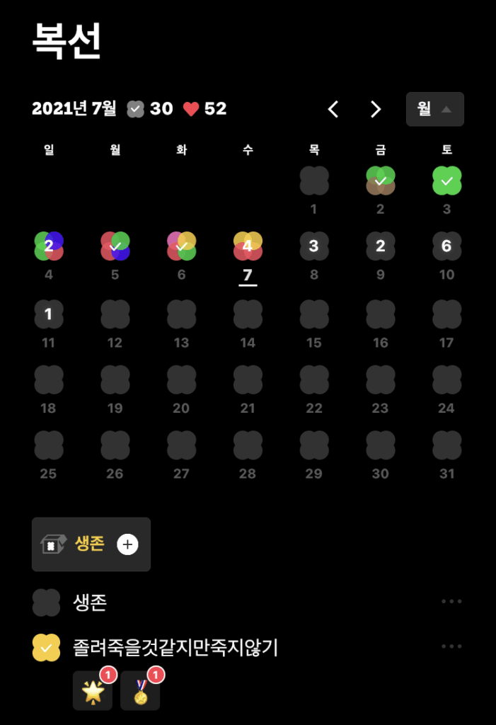 단점은… 그냥 너무 아무거나 입력할 수 있다는 것? 단점인가? 일단 나는 매일 ‘생존’ 항목을 만들어서 그날그날 생존 신고를 하는데, 왠지 살아있는 것만으로도 잘했다 잘했다 칭찬받는 기분이어서 정신건강에 상당한 도움을 받고 있다. 요컨대 Todo mate 앱은 정병케어 앱에 가깝게 사용할 수도 있는 것이다. “[단독] 나 아직 안 죽고 살아있어… 세계 70억 번째 대기록”