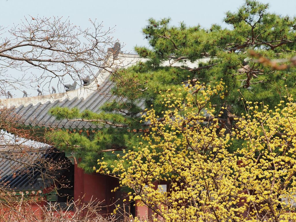 창덕궁에 왔는데 창경궁으로 넘어가지 않을 수 있나. 창경궁은 꽃나무보다는 단풍과 낙엽이 더 잘 어울리는 공간이지만, 그렇다고 해서 화창한 봄날의 기운이 나빠질 리는 없다. 산수유의 노란 꽃이, 버드나무의 연둣빛 싹이, 발밑에 솟아난 들풀이 반긴다.