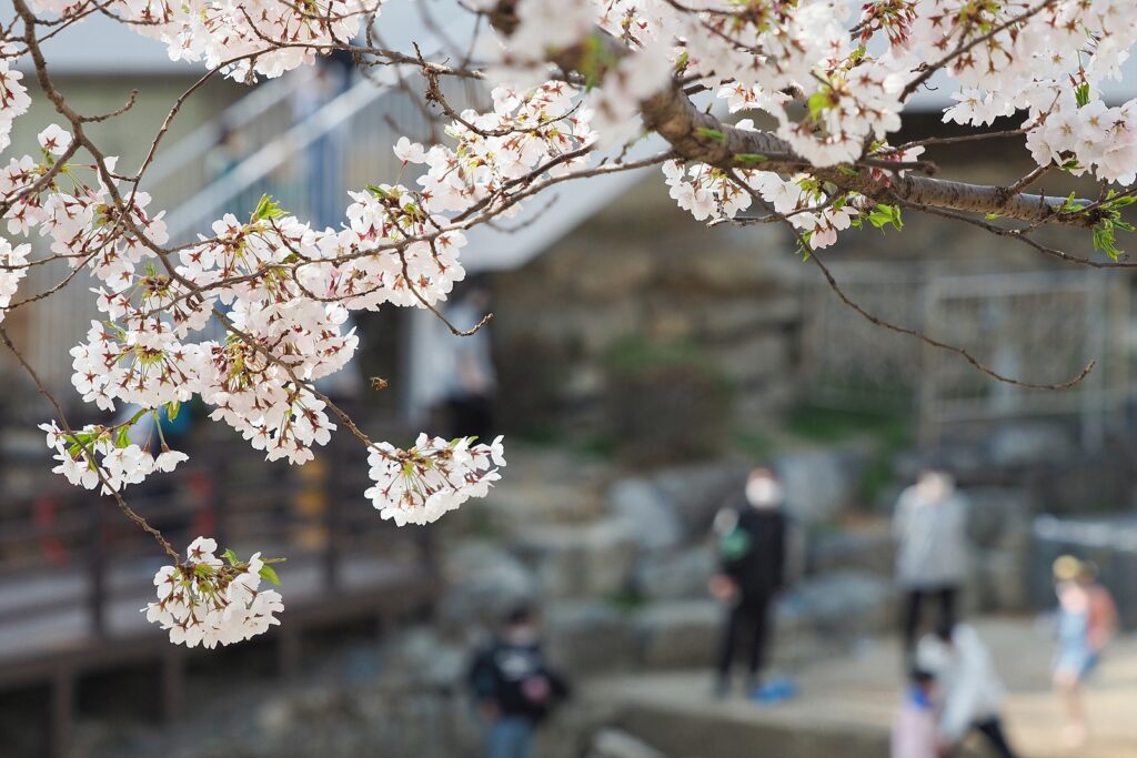 정말 오랜만에, 불광천에서도 봄꽃 행사가 열렸다. 9일, 불광천 응암역 근처에서는 물 한가운데의 임시 무대를 점검하는 작업이 한창 진행되고 있었다. 입구에서 손소독제를 받아 양손을 닦고, 3년 전으로 돌아간 듯한 인구밀도 사이로 들어갔다. 날은 훈훈했지만 바람이 꽤 세게 부는 편이었는데, 핀 지 얼마 되지도 않은 벚꽃잎이 그 바람에 날려 꽃비가 되어 떨어졌다.