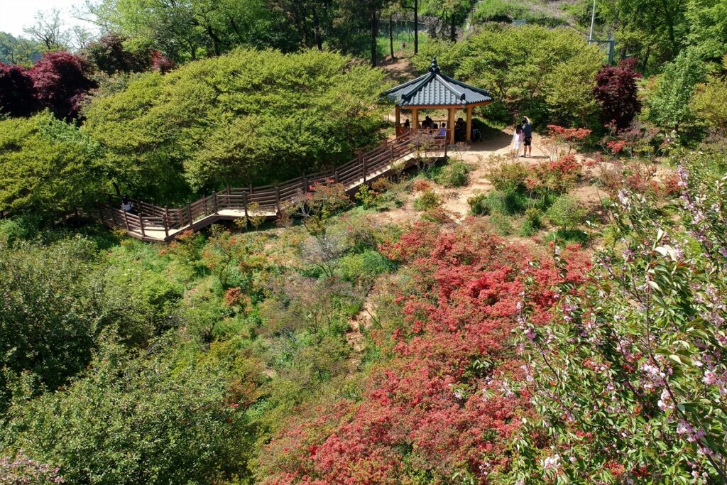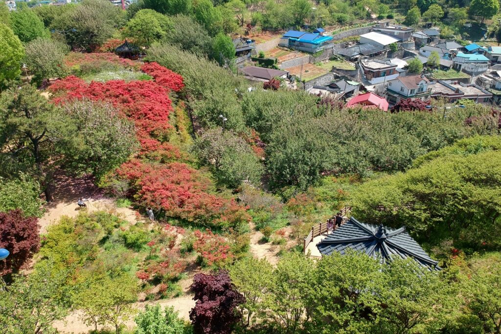 그 다음에는 완산공원 투구봉 꽃동산에 갔다. 겹벚꽃 철이 지난 것은 알고 있었는데, 혹 철쭉이 좀 남아있지 않으려나 하는 기대 때분이었다.