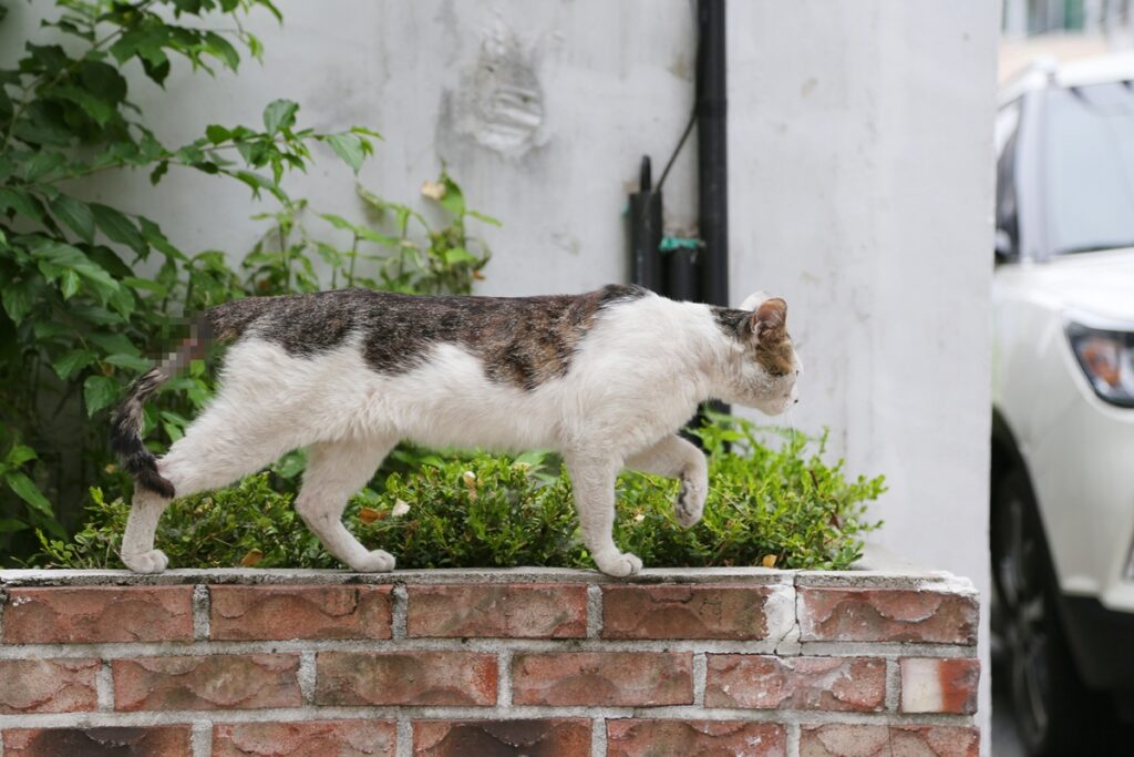 이 아이인데, 꼬리에 뭐가 감겨서 파고 들었는지 심한 상처가 있었다. 그 부분은 모자이크로 가렸다. 멀찍이서 보다가 얘한테 내가 뭘 어떻게 해줘야 하지 고민하던 중에 어디론가 사라졌다. 고양이들이 아프지 말고 잘 살았으면 좋겠다.