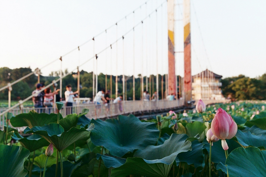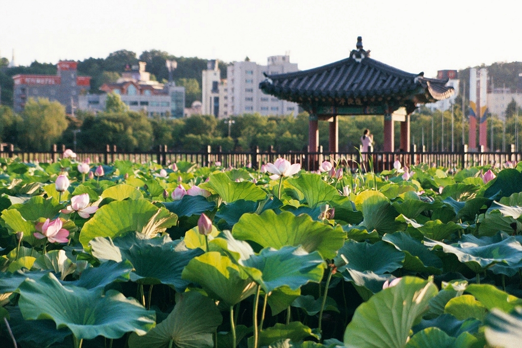 날이 너무 더워져서 카메라 들고 돌아다니기도 어려운 시절이지만, 그래도 한 번씩 산책은 한다. 어차피 눈에 익은 장소들이니 카메라라도 바꿔 들고 나가는 맛이 있어야 좀 새롭게 찍어볼 수 있다. 특별한 이유 없이 eos-1을 어깨에 걸고 나간 날, 덕진공원에는 역시나 사람이 많았다.