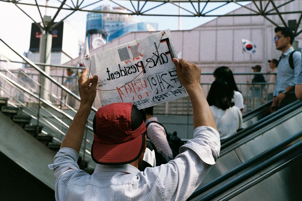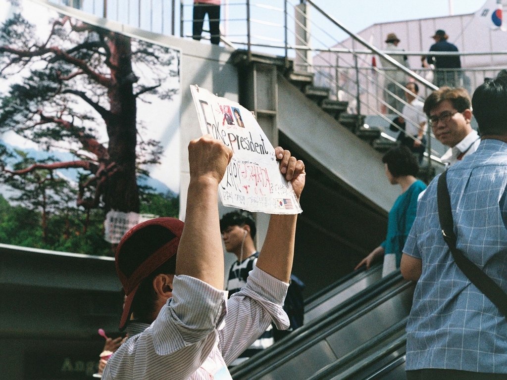 서울역 앞엘 갔는데, 별안간 문재인을 끌어내려야 한다느니 탄핵을 해야 한다느니 어쩌니 하면서 방언을 하듯 고래고래 소리 지르는 사람이 나타났다. 에스컬레이터를 타고 올라가는 동안에 찍어야겠기에 좀 서둘렀는데, 다행히 초점과 노출이 그럭저럭 맞았다.