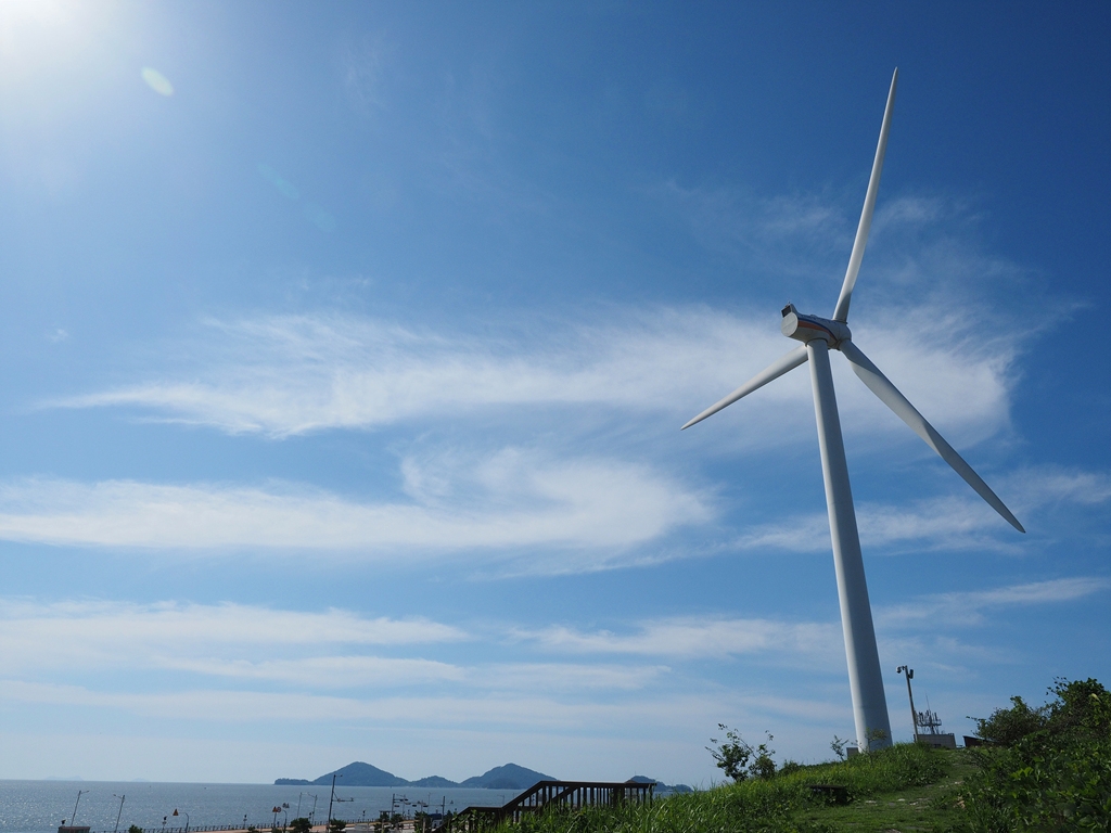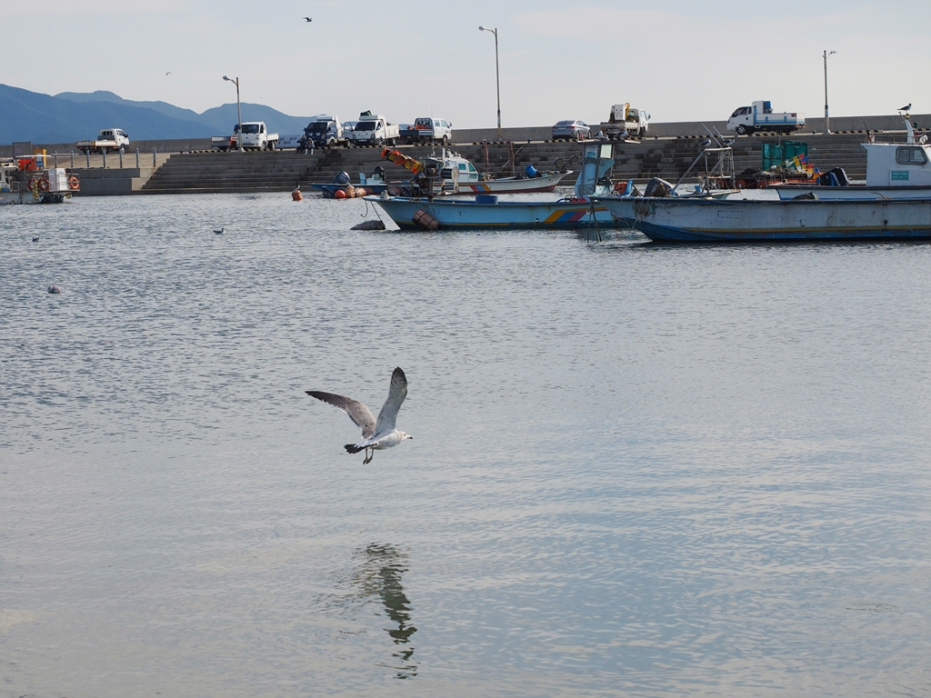 가력도는 가장 먼저 완공된 1호 방조제로 변산과 연결되고, 가력배수갑문을 지나 2호 방조제로 신시도와 이어진다. 농어촌공사의 사무소가 있고, 동산(?) 위에 풍차 두 기가 서 있다. 항구는 꽤 큰 규모인데, 수시로 배가 들락날락했다. 갈매기가 마치 도시 한복판의 비둘기처럼 모여 날아다녔다. 마침 하늘이 무척 맑고 푸른 날이었다. 파란 하늘과 그 하늘의 데칼코마니와도 같던 바다, 멀리 보이는 섬과 그 사이의 방조제, 그리고 풍차가 박힌 풍경이 ‘청량감’과 ‘위화감’을 한꺼번에 안겼다.
