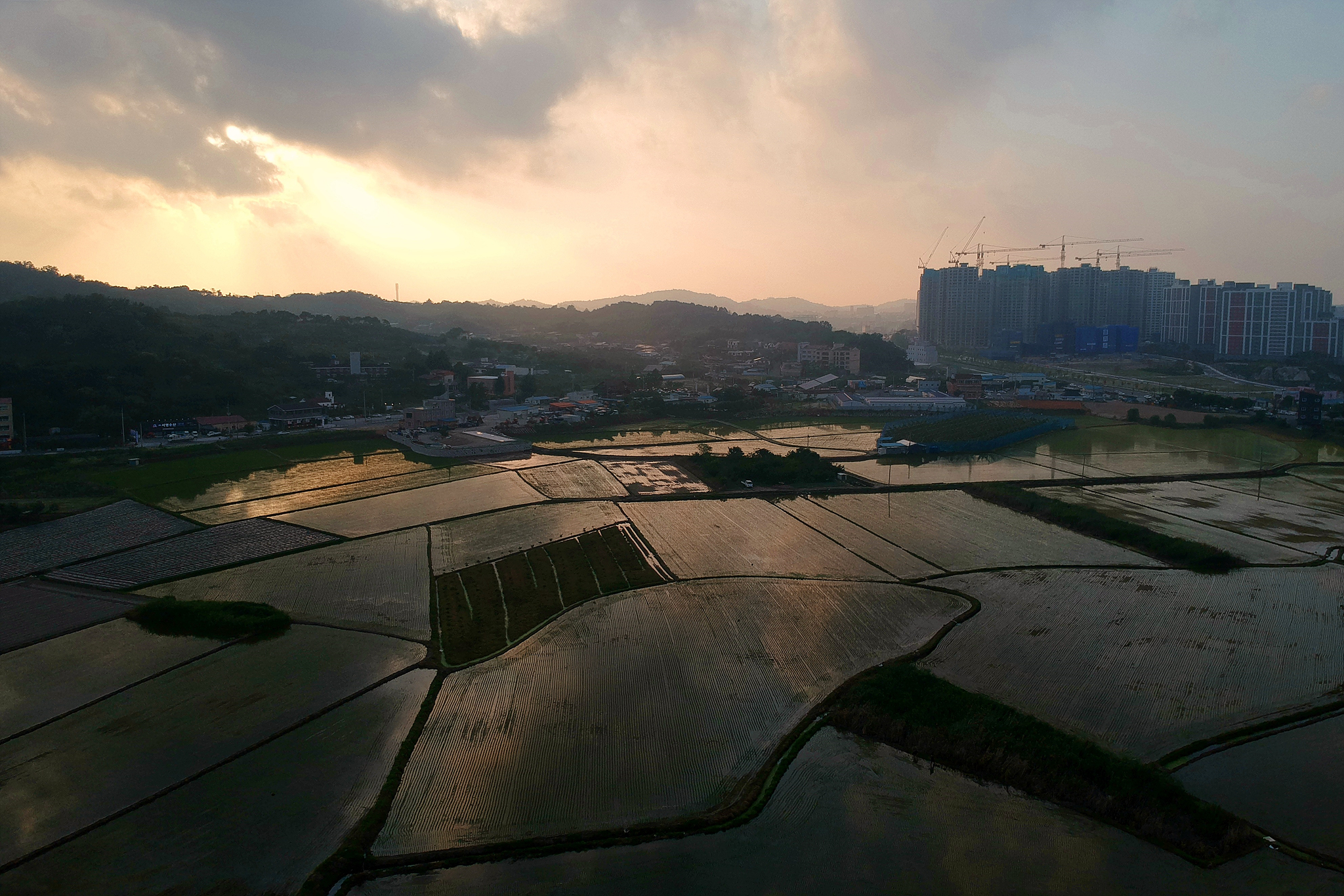 맨날 하는 이런 똑같은 생각만 반복하고 있자니, 아무래도 내가 지구 거죽에 붙어 지내는 이차원의 삶에 너무 안주하고 있었던 모양이다. 오랜만에 드론을 띄웠다. 서울에서는 할 수 없던 일이다. 하필 이날 안개 비슷한 것이 깔려서 시정이 좋은 편은 아니었지만, 그러면 뭐 어떠랴.