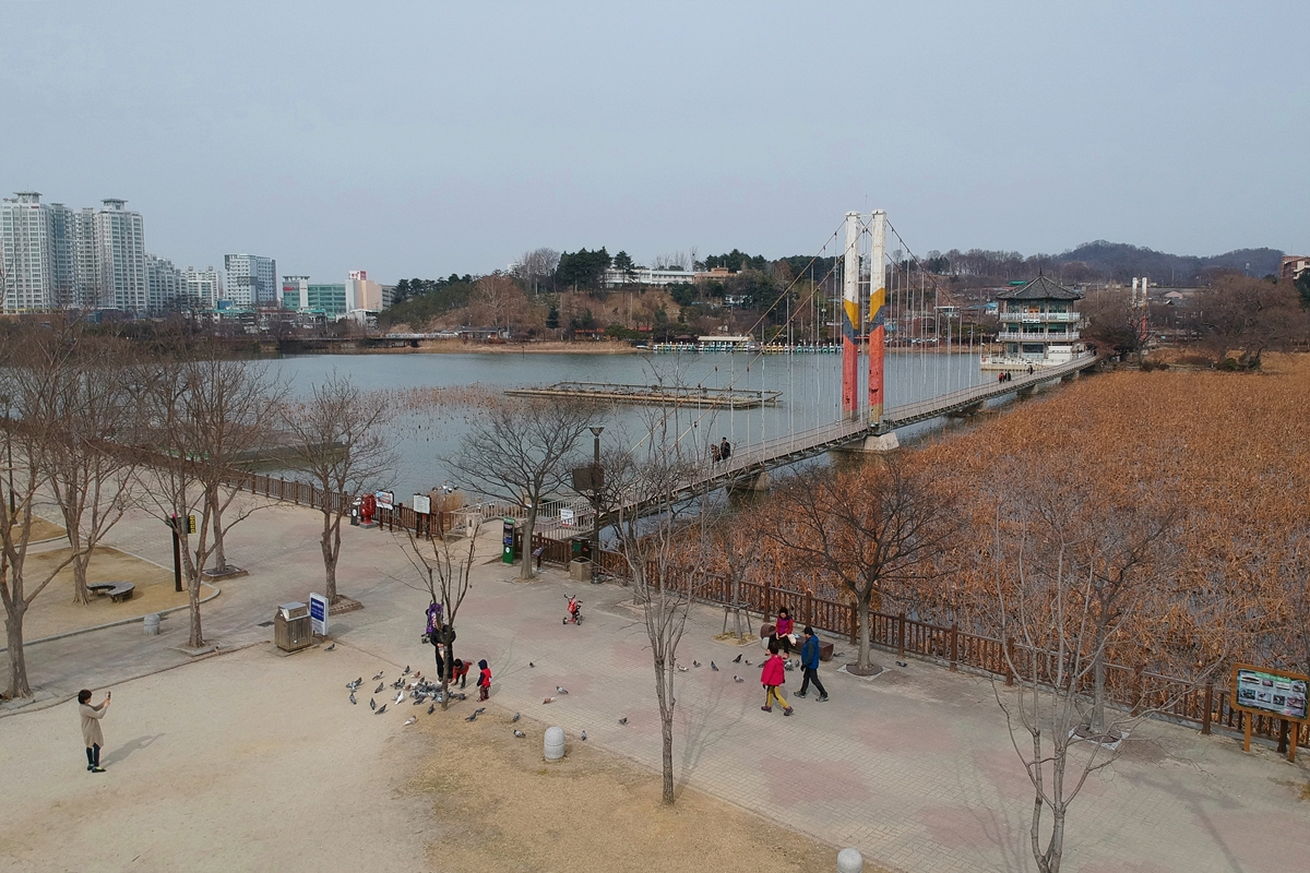 연일 ‘징그럽게 추운 날씨’가 이어지고 있다. 혹시나 해서 덕진연못(덕진호수?)을 찾았더니, 역시나, 완전히 꽝꽝 얼었다. 수면이 잔잔한 상태로 그대로 얼어버렸는지, 바닥이 그대로 비쳐 보일 정도로 투명한 ‘고오급 얼음’이 됐다. 이런 날씨에 드론을 띄우려면 무엇보다도 배터리에 신경을 많이 써야 한다. 추운 날에는 배터리 전압이 갑자기 떨어지는 수가 있으니, 본격적인 비행 전에 예열은 필수다. 안전한 장소에서 한 2분 정도 가만히 띄워놓고 있으면 그럭저럭 날 수 있는 온도가 된다. 드론 배터리뿐 아니라, 조종기 모니터로 쓰게 되는 폰의 배터리도 신경을 써야 하는데, 이게 날이 너무 추우면 그냥 그대로 팍 꺼져버리는 수가 있기 때문이다. 한 번 그런 일을 겪었는데, 다행히 드론이 매우 가까운 곳에 있어서 안전하게 착륙시킬 수 있었다. 시계 내 비행 원칙이란 건 이런 일을…
