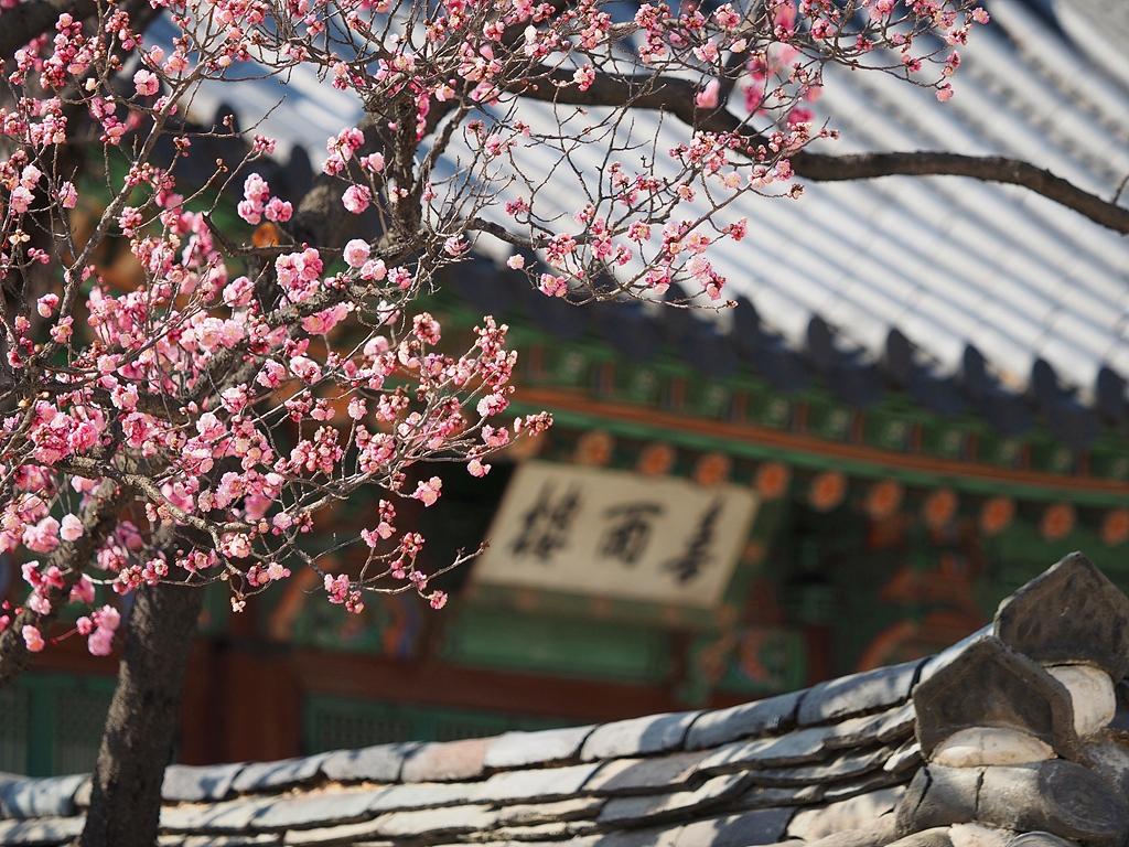 12-40 렌즈와 40-150 렌즈를 가지고 창덕궁에 갔다. 바람과 볕의 균형이 절묘하게 맞아서 산책하기 참 좋은 날이었는데, 딱 하나 문제가 있다면 미세먼지 수치가 조금 높았다는 점이다. 매화나 산수유처럼 나무에서 피는 꽃들은 망원으로 당겨 찍어야 하는 경우가 왕왕 있다. 사람의 키는 평균적으로 그다지 크지 않기 때문이다. 40-150 pro 렌즈는 그러려고 산 것이다. 40-150 pro 렌즈가 파나소닉 35-100 f/2.8 렌즈에 비해서 크고 무거운 건 맞지만, 어디까지나 마이크로포서드 렌즈군 내에서나 그렇지 비슷한 화각대의 비슷한 급 렌즈를 비교해 보면 큰 것도 무거운 것도 아니다. 그리고 35-100에 비해서는 줌 배율이 더 크고 이너줌 디자인이니까 감안할 구석도 있다. 망원단의 원근압축효과를 이용해서 서로 다른 색을 화면에 포개어 놓을 수 있다. 원근감은 피사계 심도가 처리해줄 것이다. 전구간 조리개값이 2.8이라서…